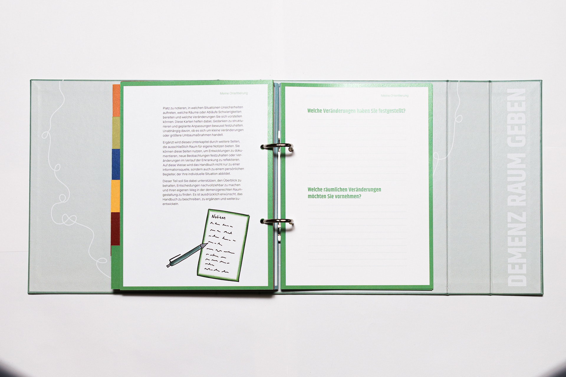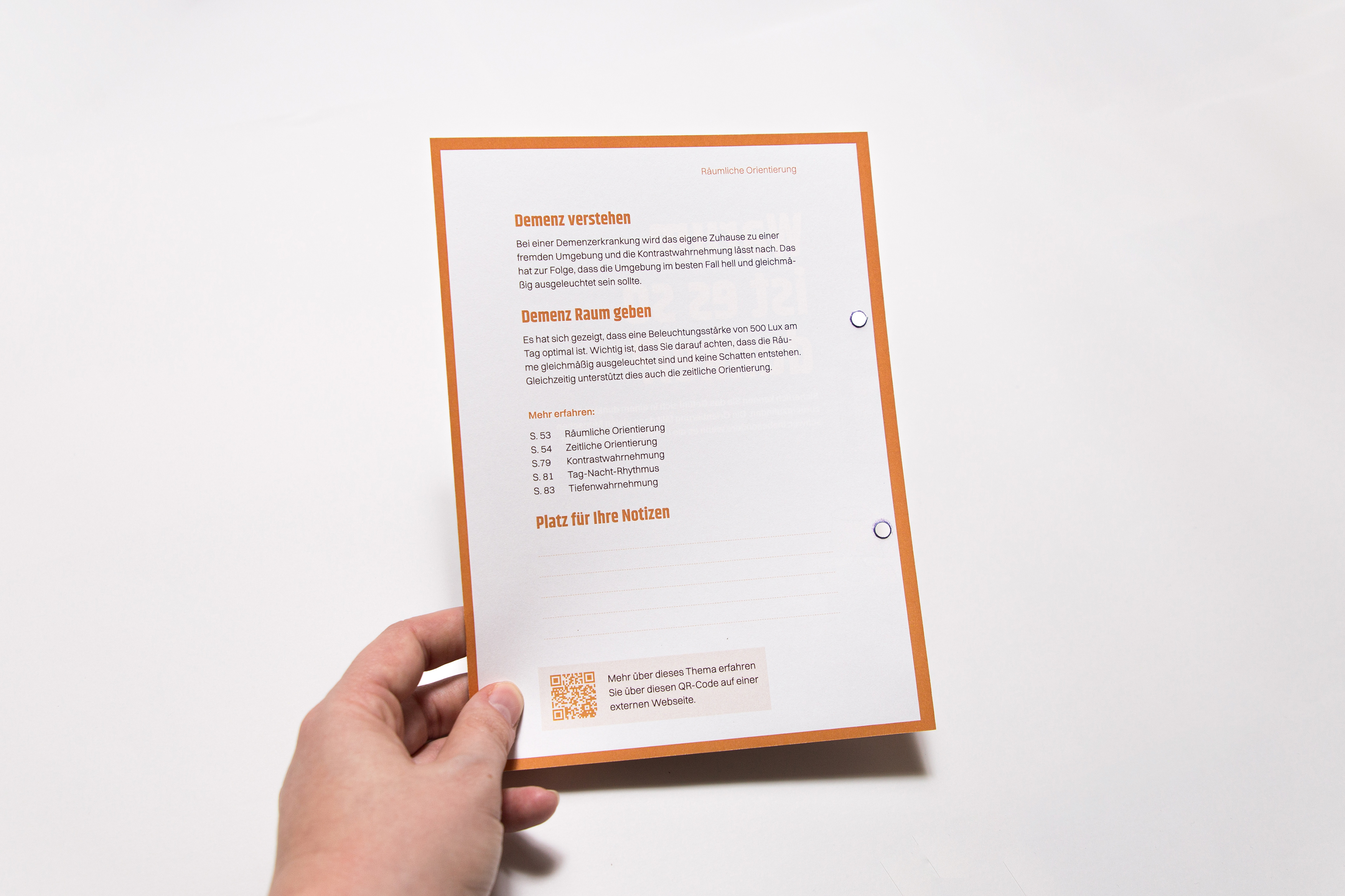Dieses Handbuch lädt dazu ein, die Wahrnehmung von Menschen mit Demenz neu zu betrachten. Es macht sichtbar, wie sich Räume aus ihrer Perspektive anfühlen und warum Umgebung, Licht, Farben und Orientierung eine so große Rolle spielen. Gleichzeitig versteht sich dieses Buch als Arbeitsbuch. Es ermutigt dazu, Beobachtungen festzuhalten, individuelle Probleme zu notieren und eigene Gedanken oder Lösungen zu ergänzen. Denn jede Demenzerkrankung ist anders.