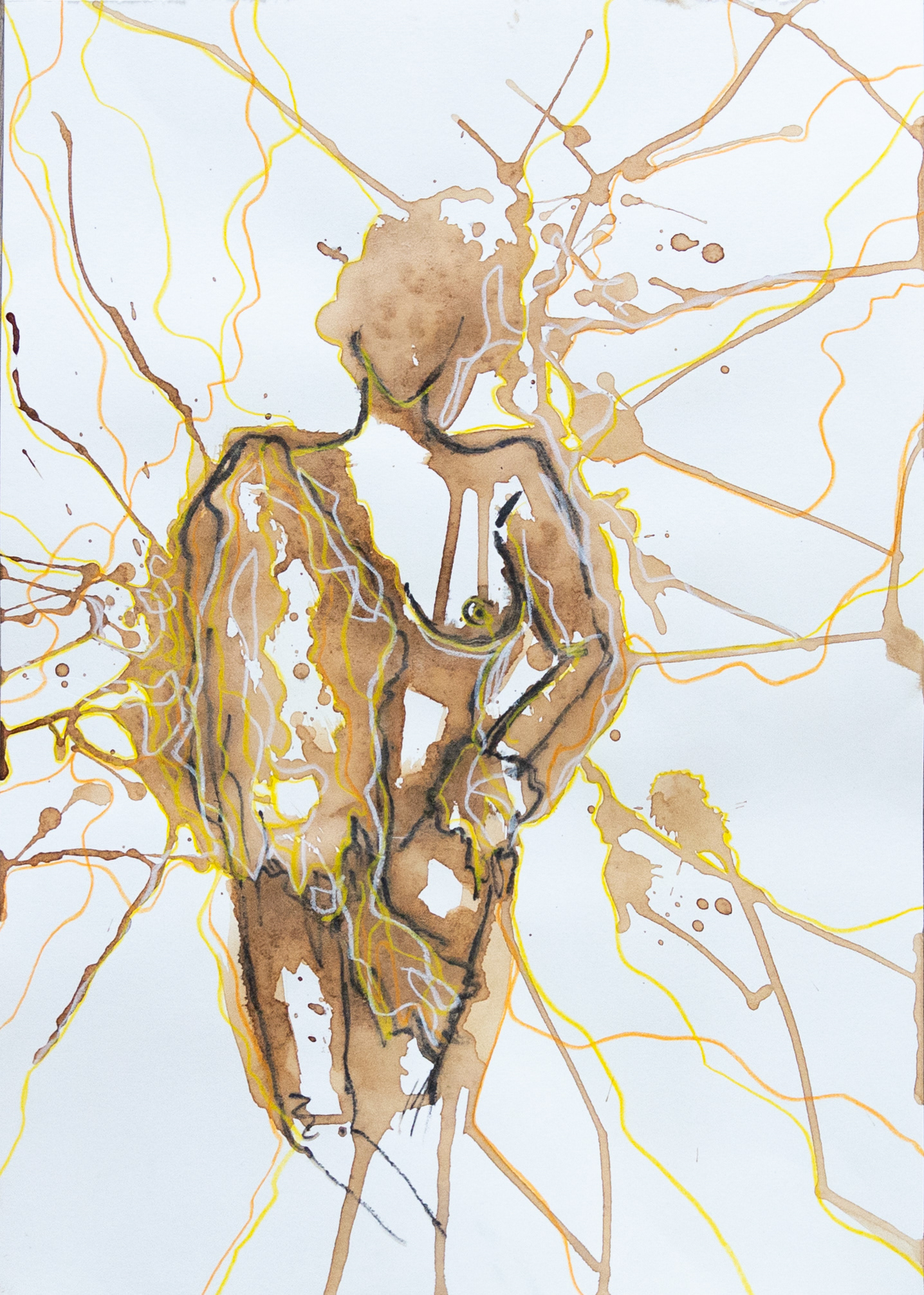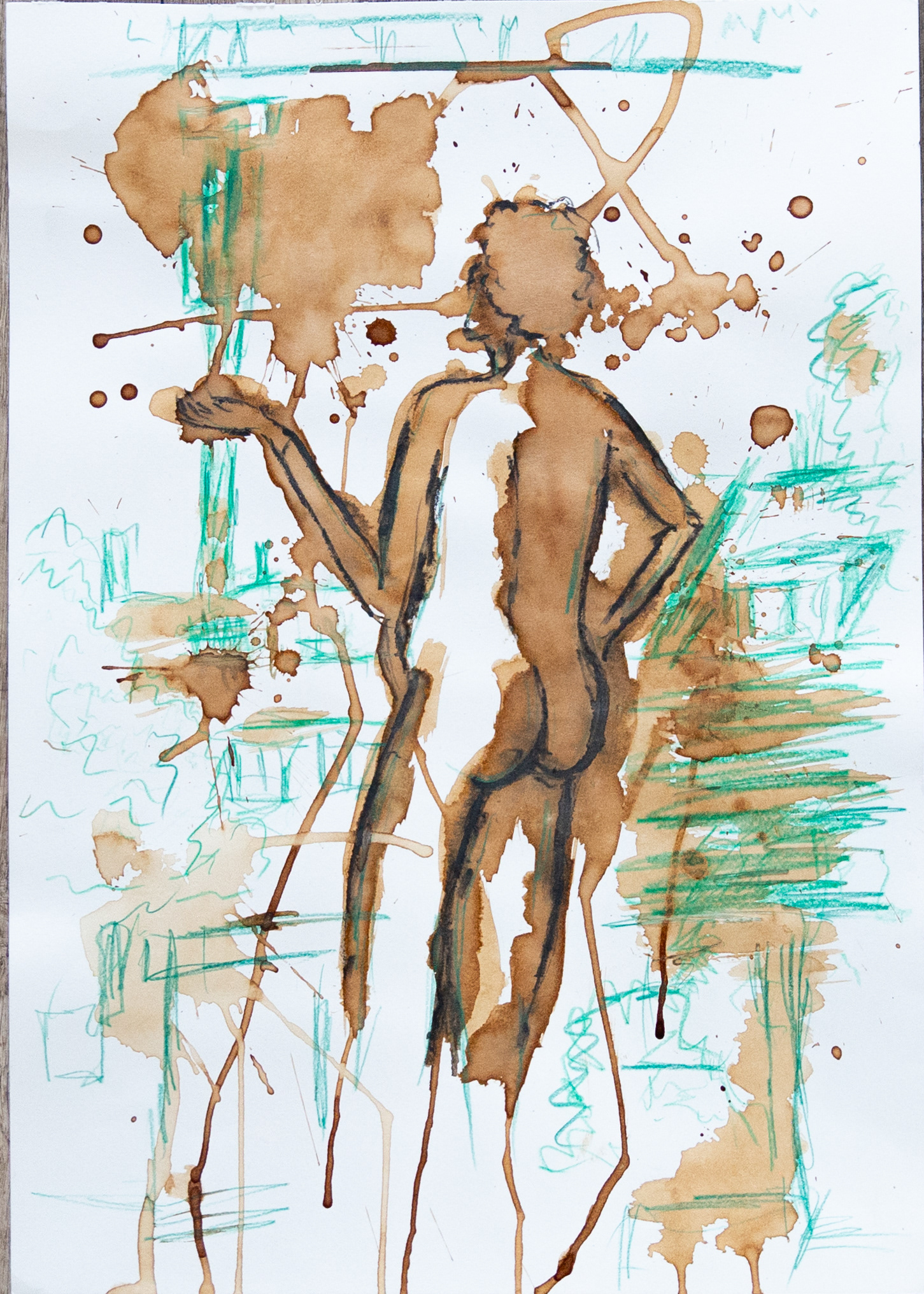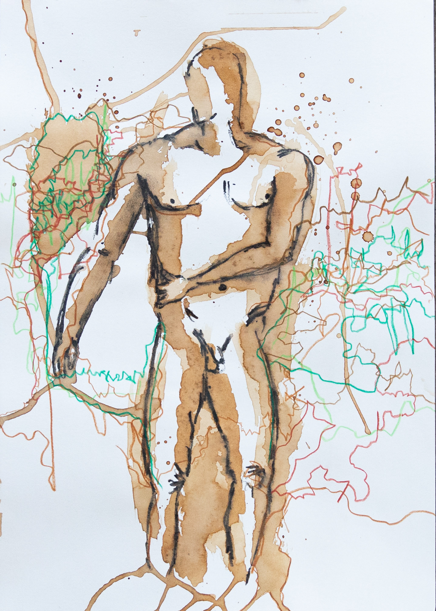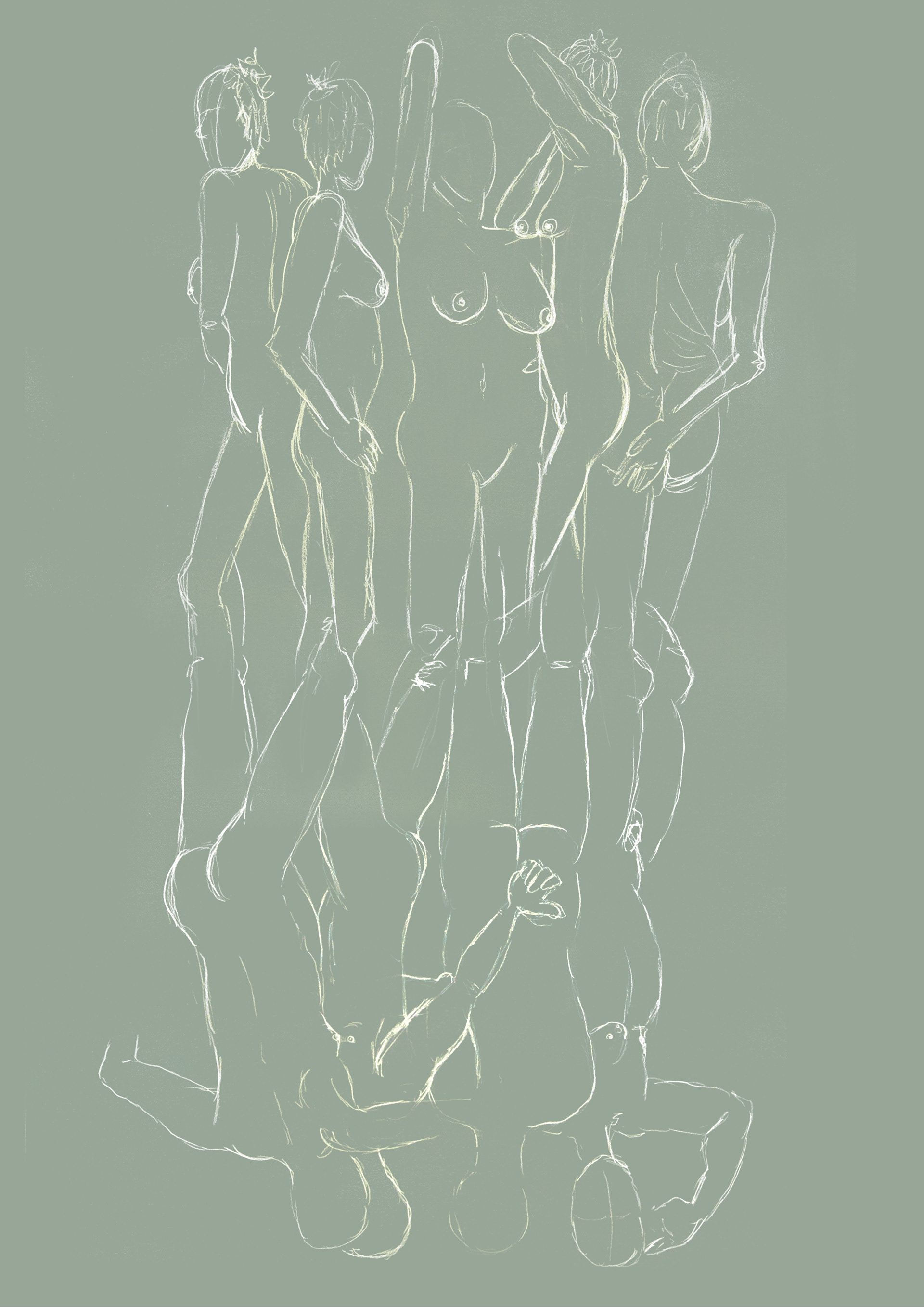 Im Rahmen meines Studiums habe ich ein Semester Aktzeichnen belegt. Im Fokus stand hierbei nicht die perfekte Aktzeichnung zu erstellen, da dies einerseits den Zeitrahmen eines Semesters sprengen würde, aber auch nicht hilfreich für unsere Weiterentwicklung als Kommunikationsdesigner*innen ist. So stand im Vordergrund das ganze Blatt zu betrachten und spannende Bildkompositionen zu erstellen. So sind zwei Serien enstanden.