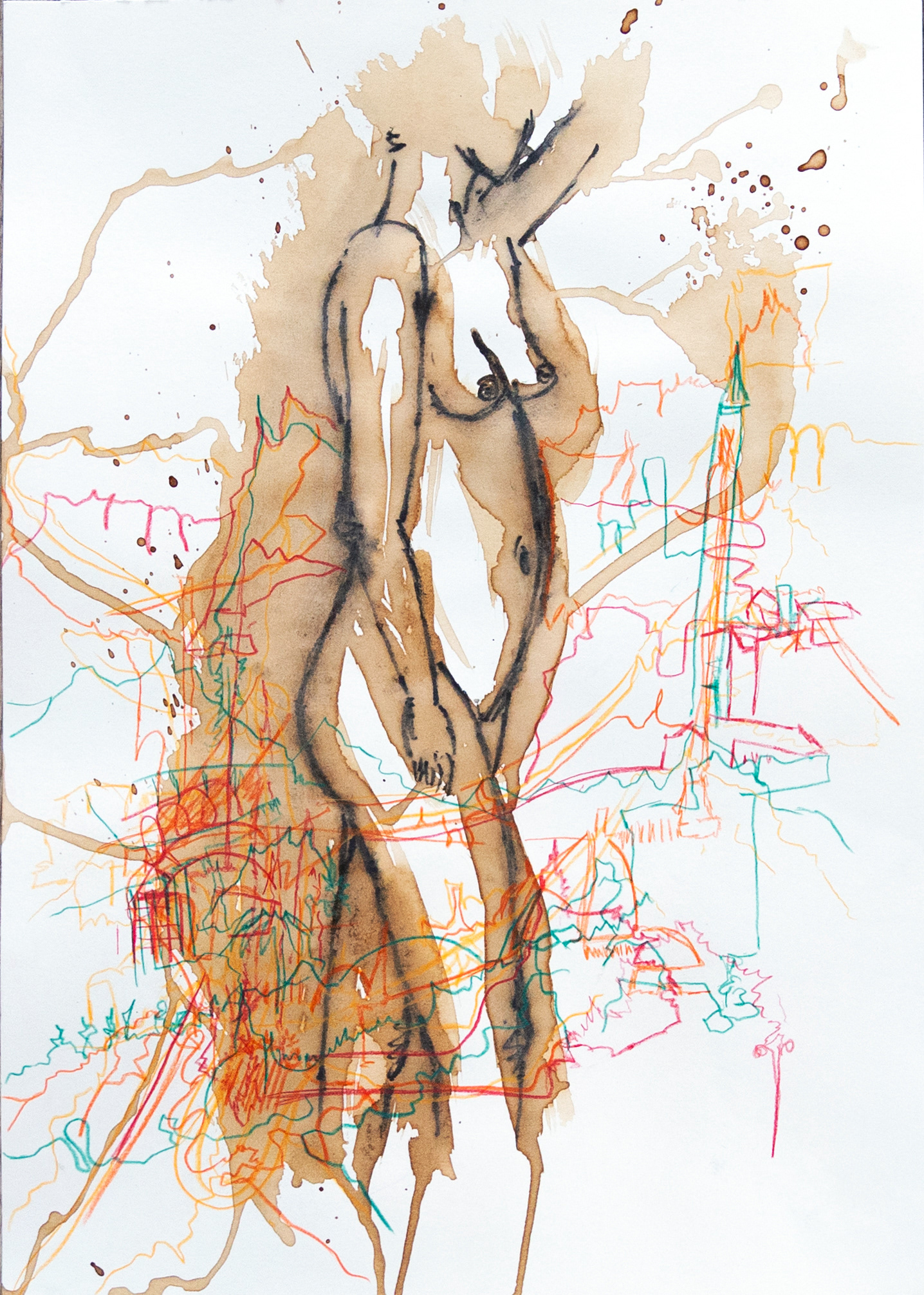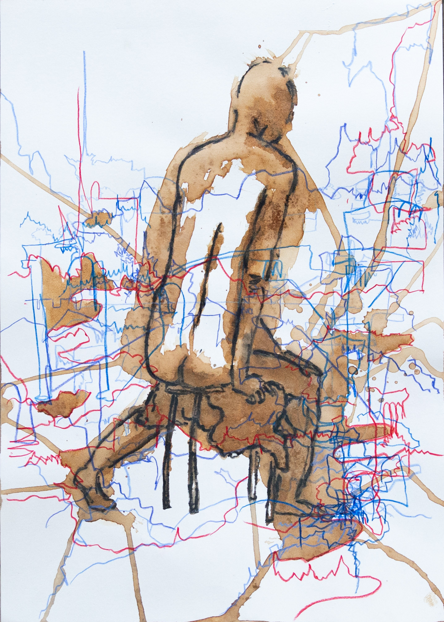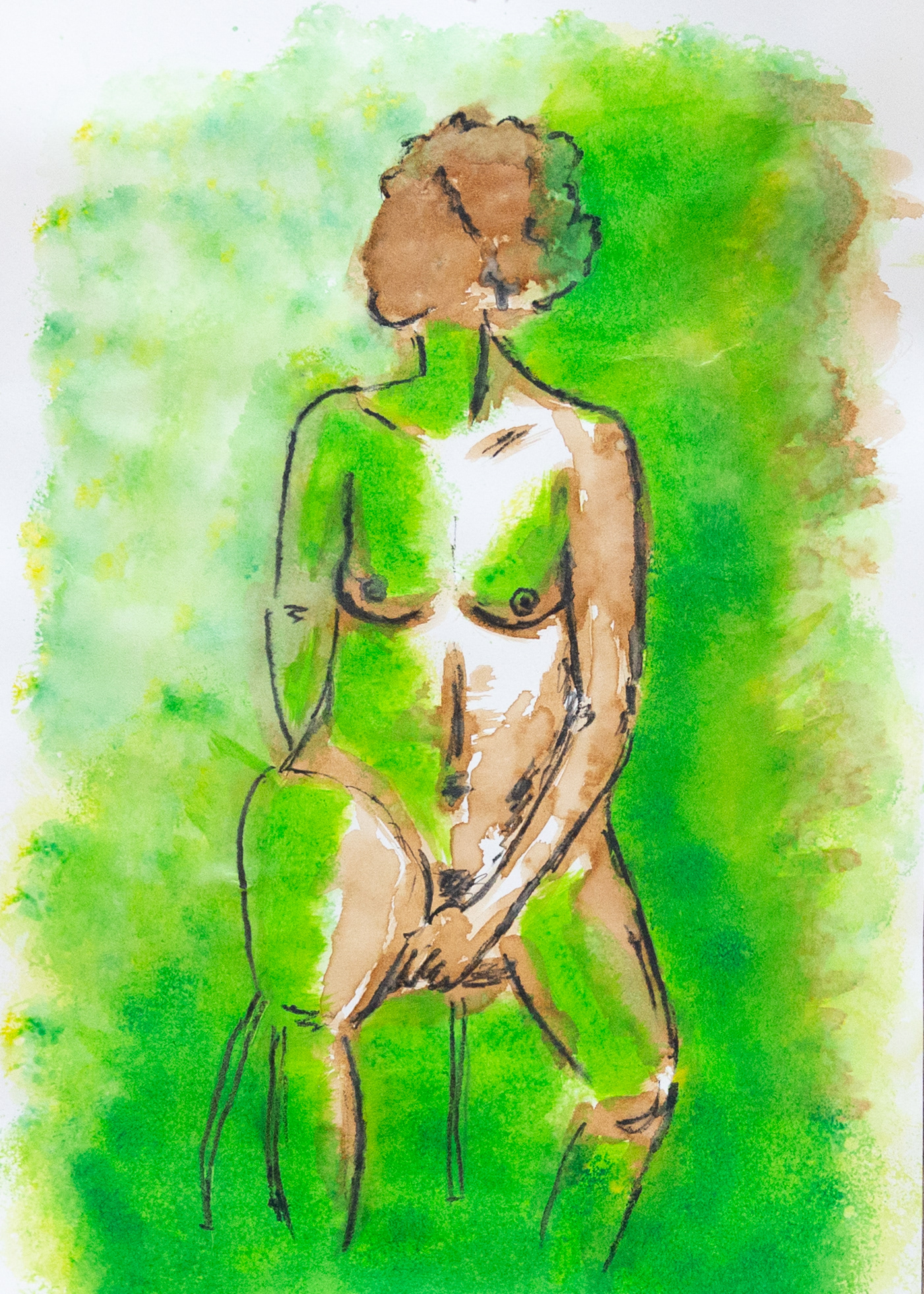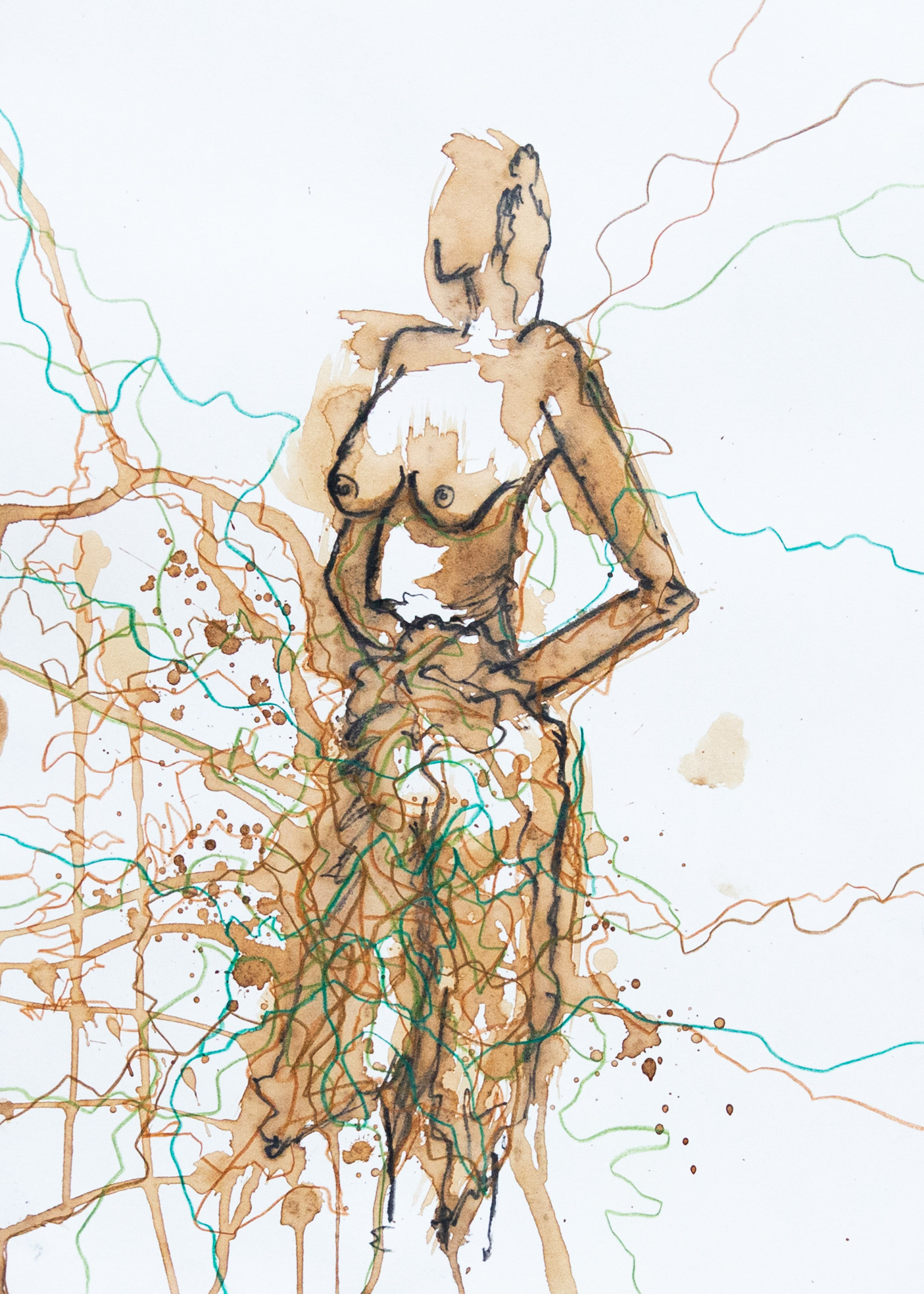 Im Rahmen meines Studiums habe ich ein Semester Aktzeichnen belegt. Im Fokus stand hierbei nicht die perfekte Aktzeichnung zu erstellen, da dies einerseits den Zeitrahmen eines Semesters sprengen würde, aber auch nicht hilfreich für unsere Weiterentwicklung als Kommunikationsdesigner*innen ist. So stand im Vordergrund das ganze Blatt zu betrachten und spannende Bildkompositionen zu erstellen. So sind zwei Serien enstanden.