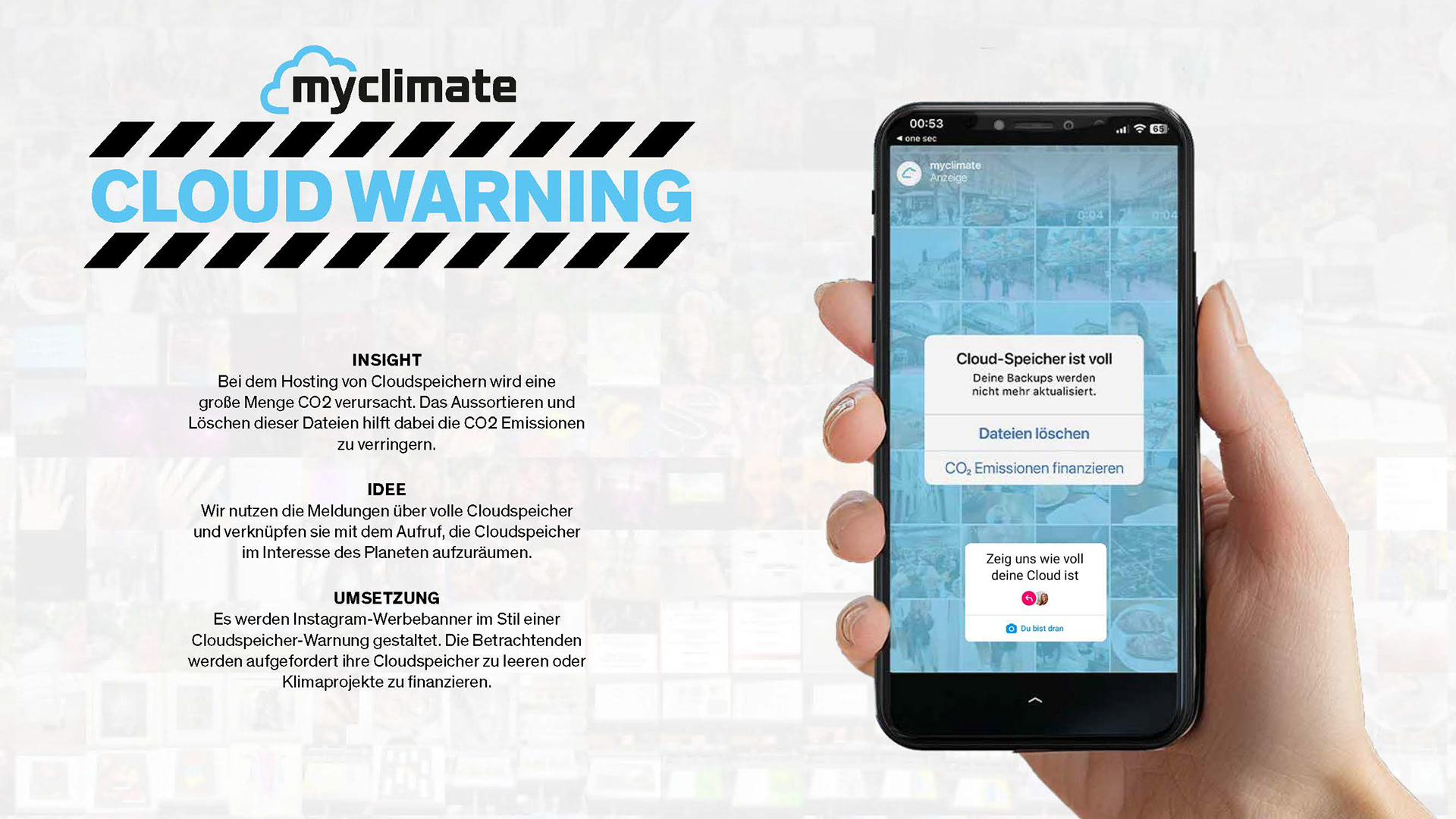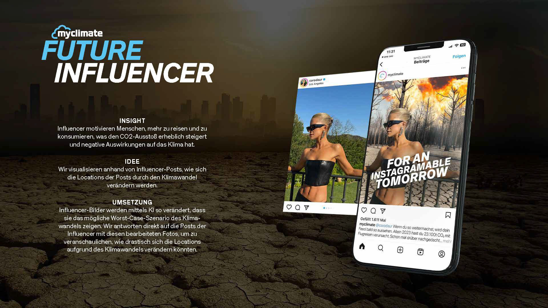 Im Rahmen der Projektwoche an der Hochschule Düsseldorf sollten Werbekampagnen für die Züricher Klimaschutz Stiftung myclimate ausgearbeitet und anschließend vor einer Jury präsentiert werden. Ziel war es möglichst spannende und außergewöhnliche Kampagnenideen zu entwickeln und auf einem einzelnen Board verständlich auf den Punkt gebracht werden. Neben einer ersten Visualisierung sollten die Boards auch den Insight, die Idee und die Umsetzung beinhalten.